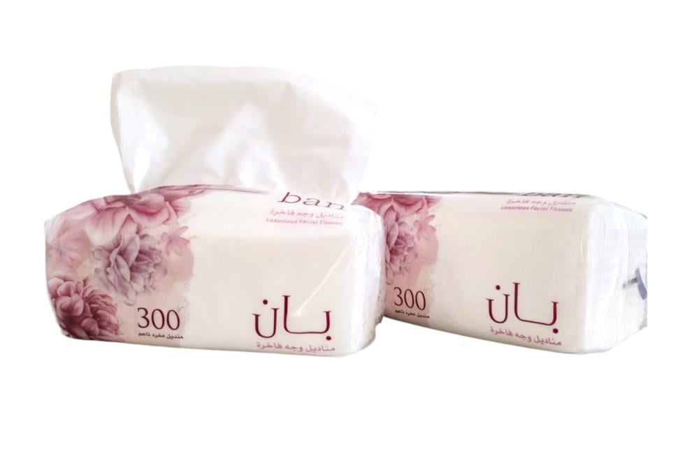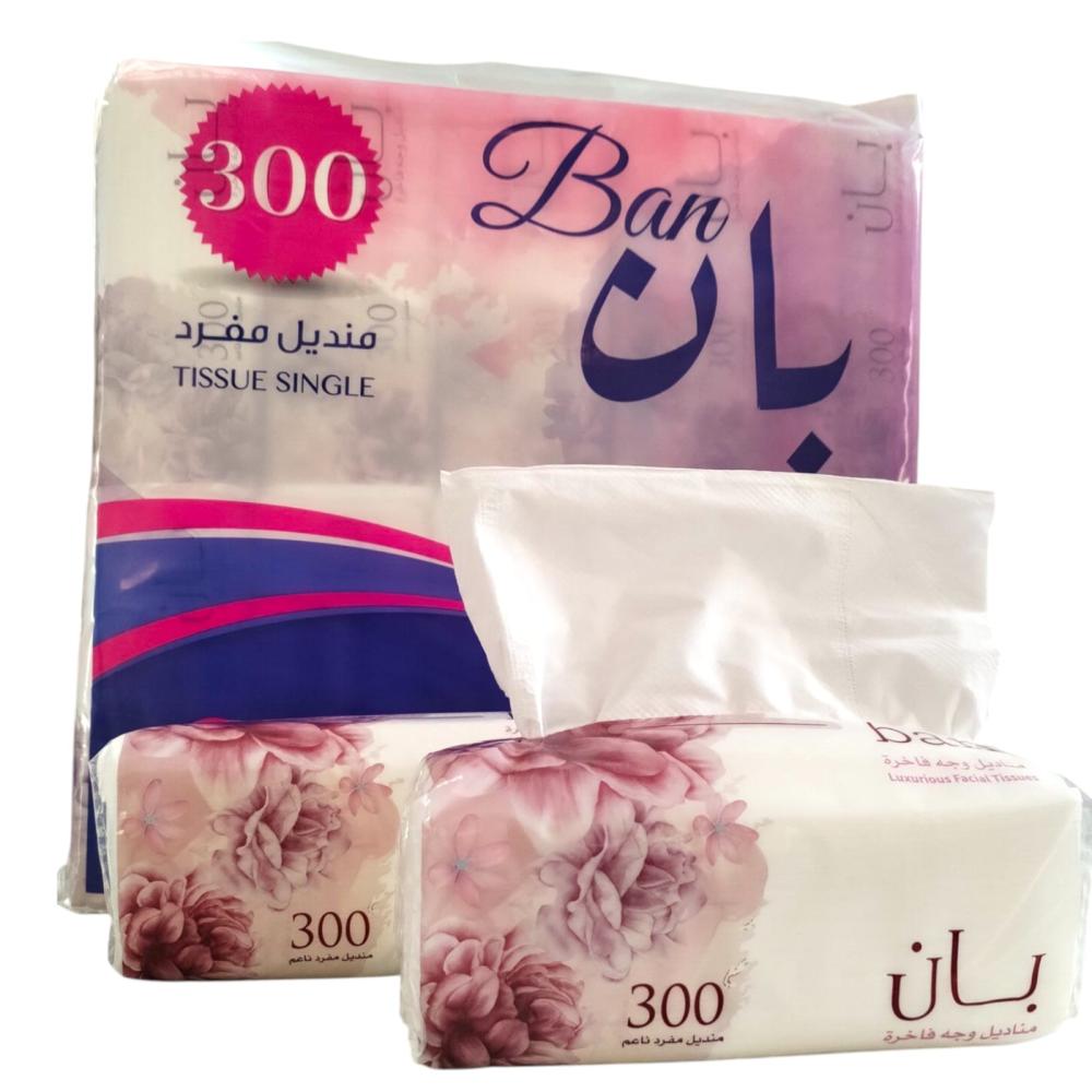 50 عبوة فاخرة من مناديل بان , في كل عبوة 300 منديل مفرد عالي الجودة .