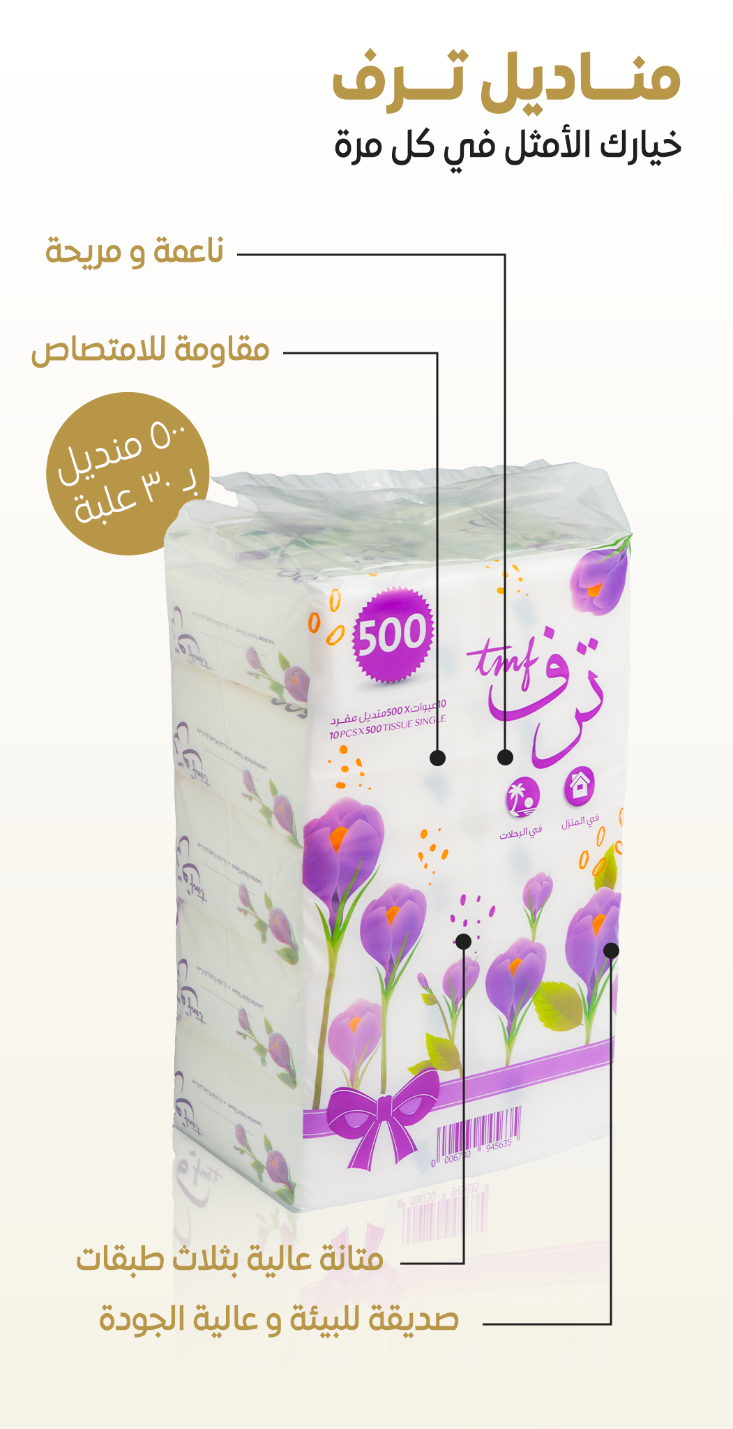 >> مميزات مناديل ترف 500 منديل: